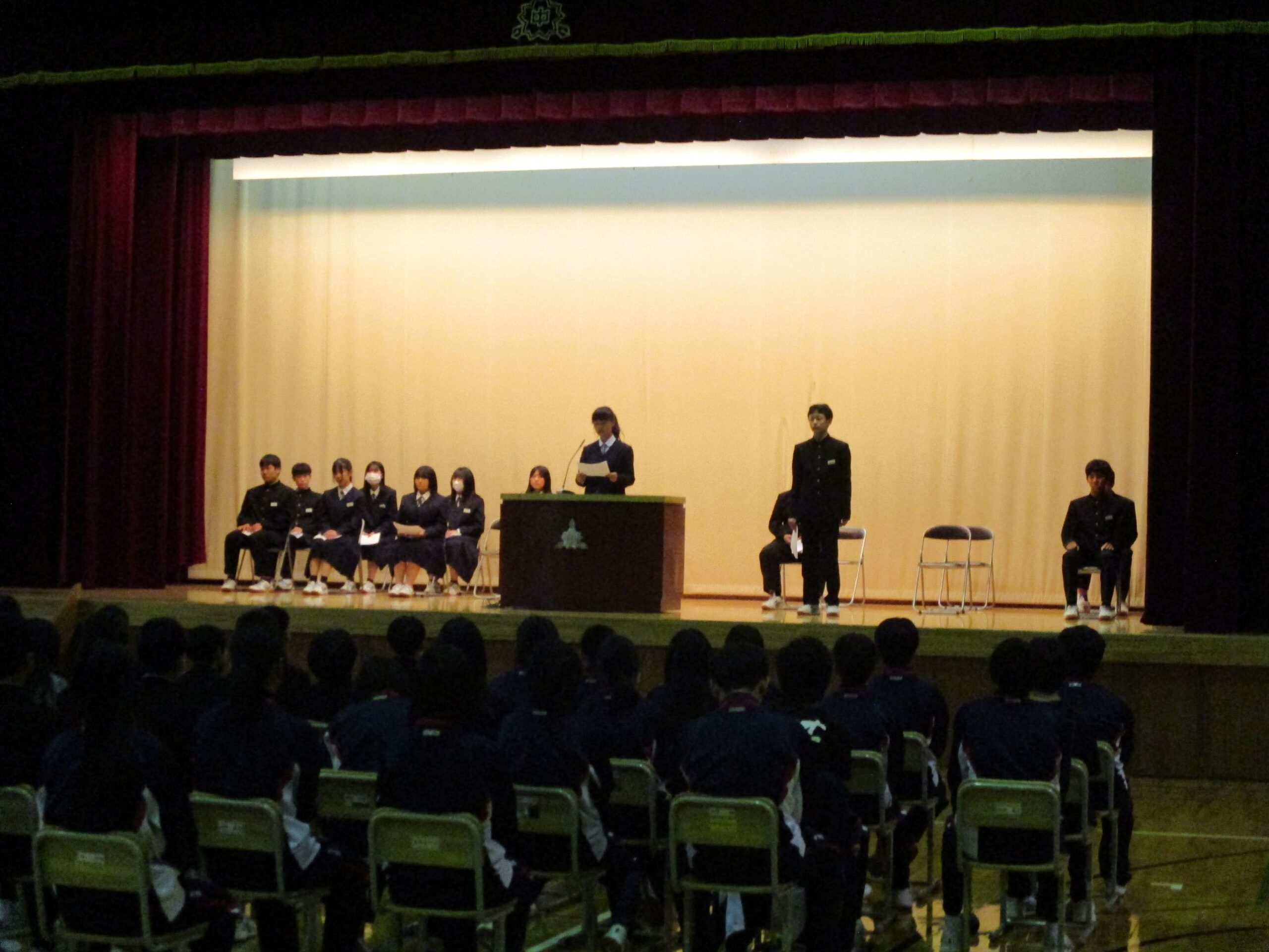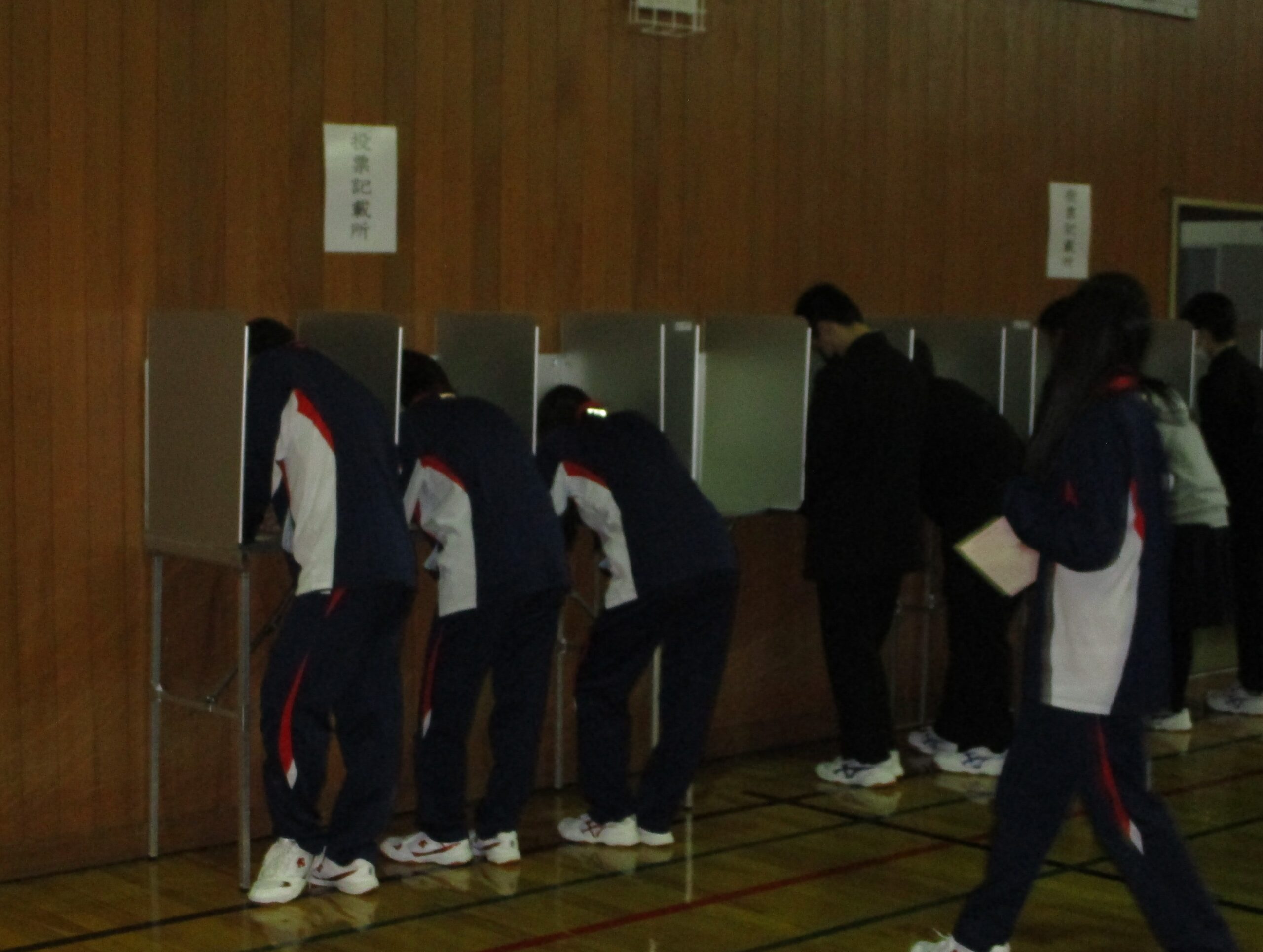 これまで3年生が中心になって活動してきた生徒会事務局ですが、その活躍を見てきたからでしょうか、今回1・2年生から多くの立候補者が出て、会長職は選挙になりました。(ほかの役職は定数どおりの立候補者だったため、信任投票になりました。)