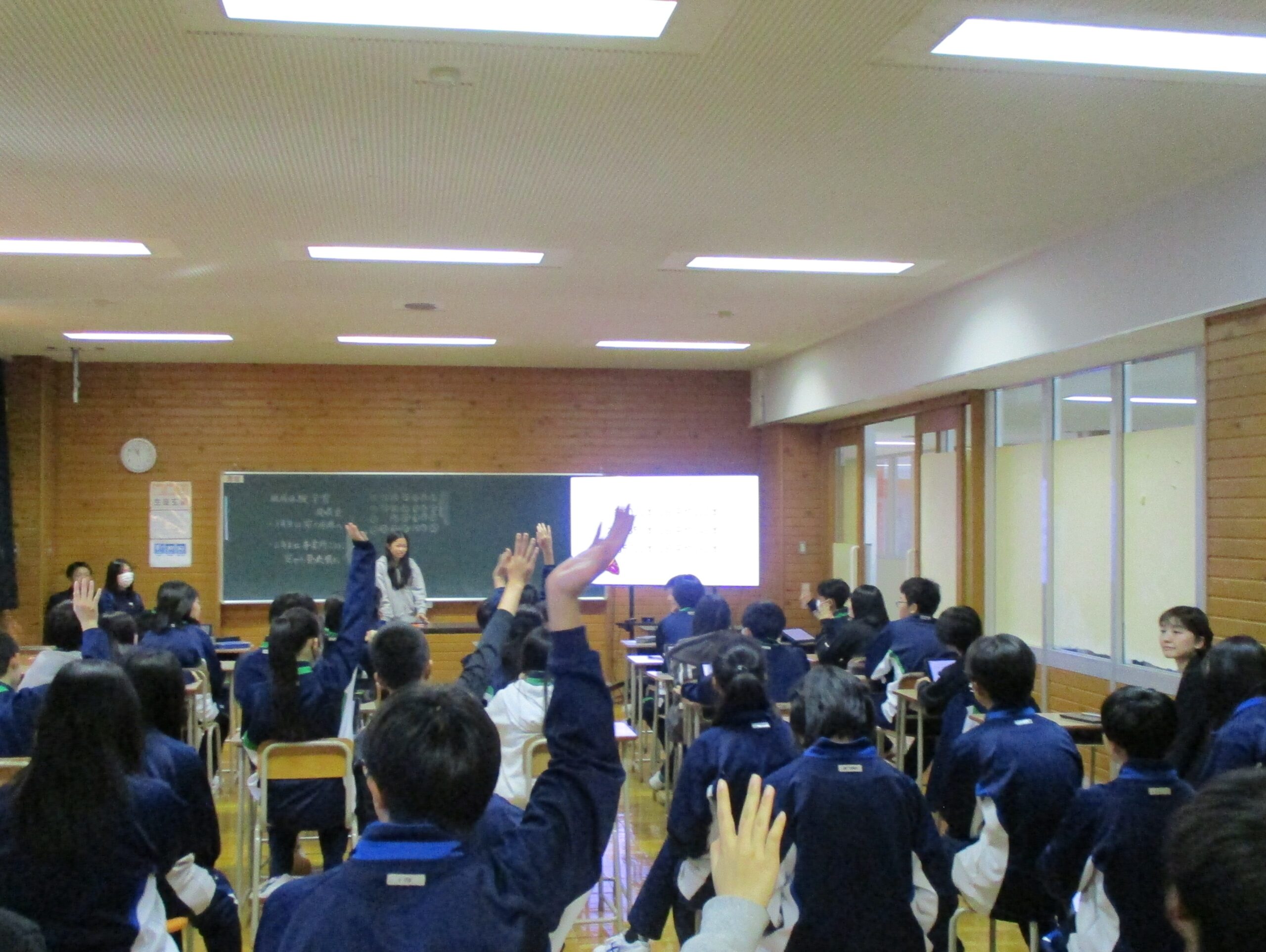 11月5日(水曜日)、2年生が1年生に向けて、職場体験発表会を行いました。