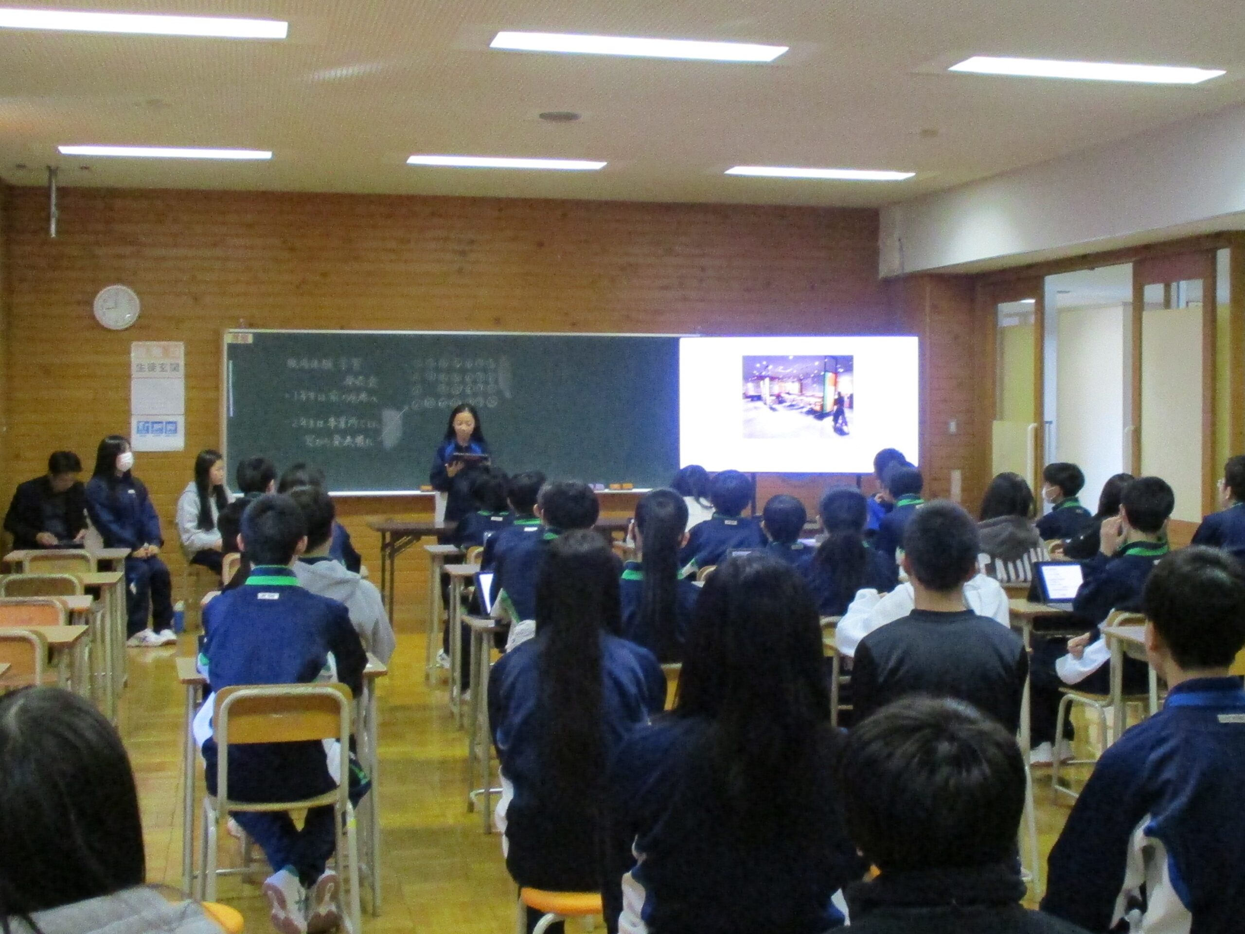 11月5日(水曜日)、2年生が1年生に向けて、職場体験発表会を行いました。