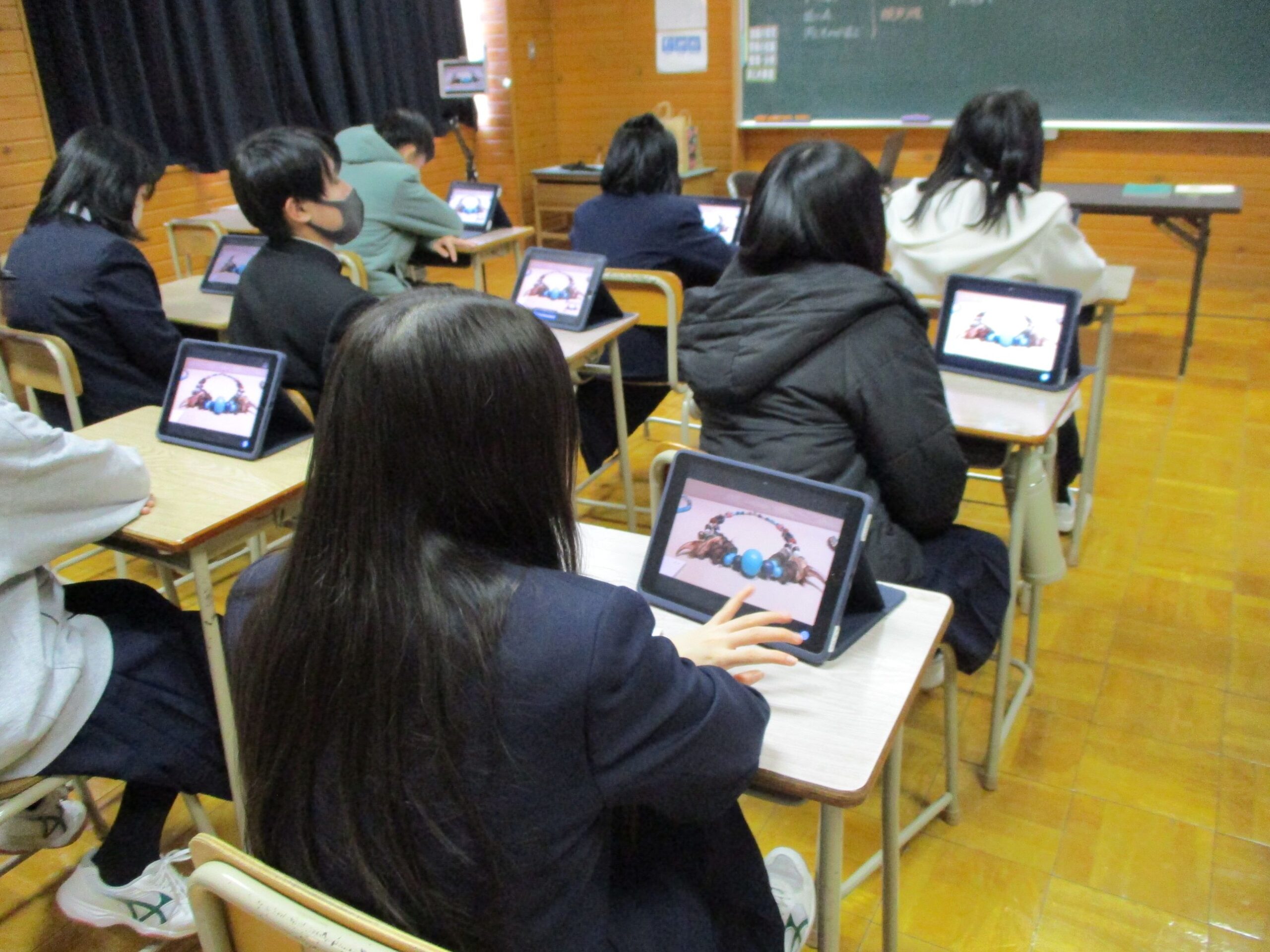 12月3日(水曜日)、1年生の美術の授業で釧路芸術館と結んだオンライン鑑賞会を実施しました。
